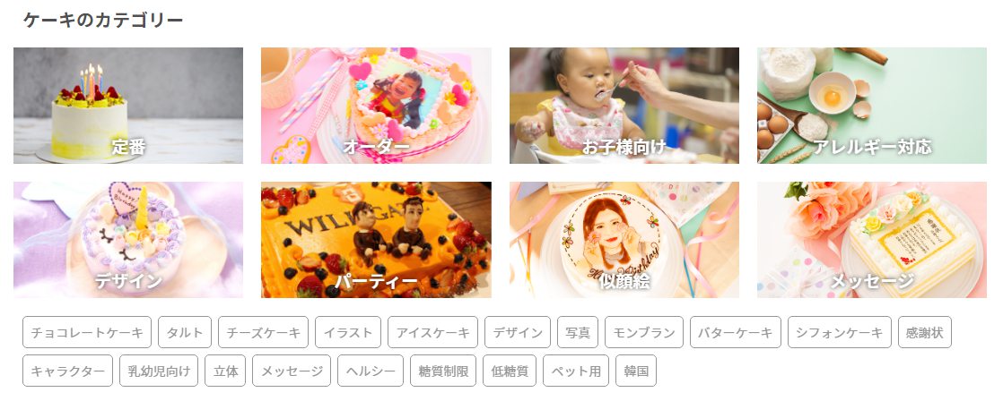 近くの店舗ではなかなか手に入らない写真ケーキやイラストケーキ、ファーストバースデーケーキ、アレルギー対応のケーキなどが人気です。