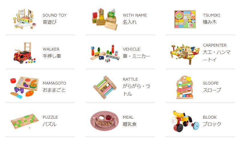 男の子も女の子も遊べる木のおもちゃの人気ブランドやドイツのおもちゃまで揃い!大手ベビー用品店でも取り扱い店舗多数!手作りで温かみのある「木のおもちゃ」の圧倒的な品揃えで、「赤ちゃんの自分で出来た!」や「子育てって楽しい!」と思える赤ちゃんの成長の発見のお手伝いをします。