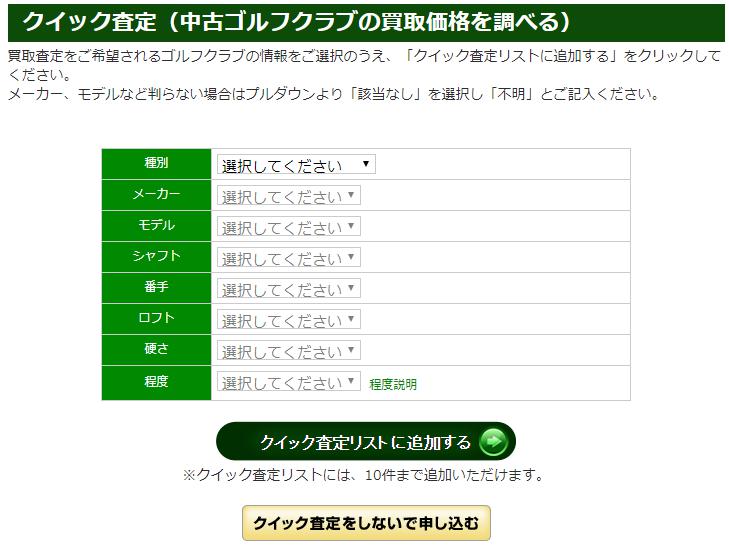 買取手数料はすべて無料!まずはクイック査定であなたのゴルフクラブの買取相場を確認下さい!ゴルフクラブを売るならゴルフエースへ!!