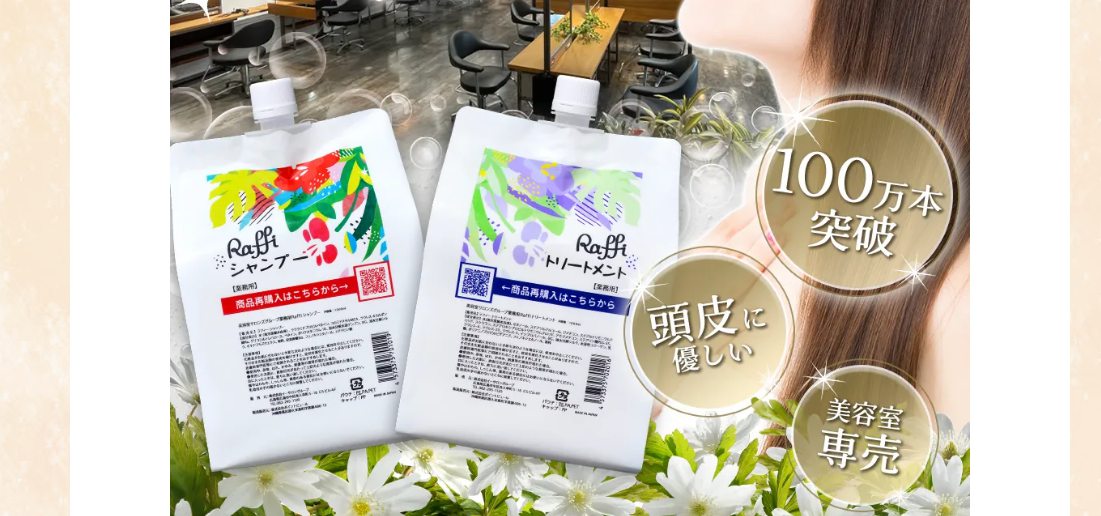 イーサロングループが開発したラフィーシャンプー。頭皮の乾燥を防ぎ、保水、保湿を与えます。ノンシリコンでアミノ配合。パサつかず、しっとりとした洗い心地と、サラサラな髪に仕上げます。