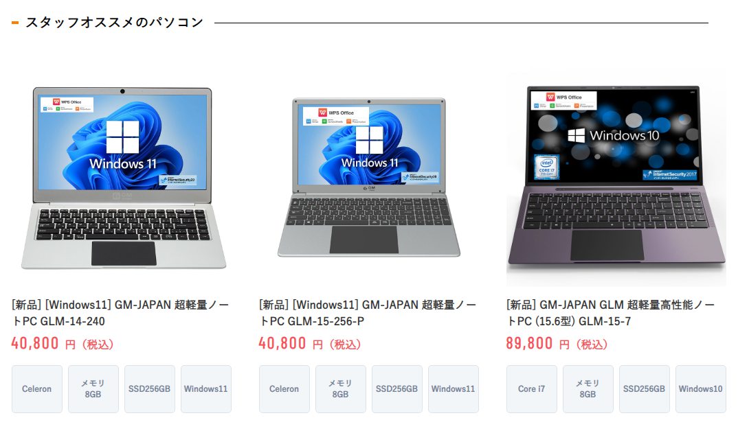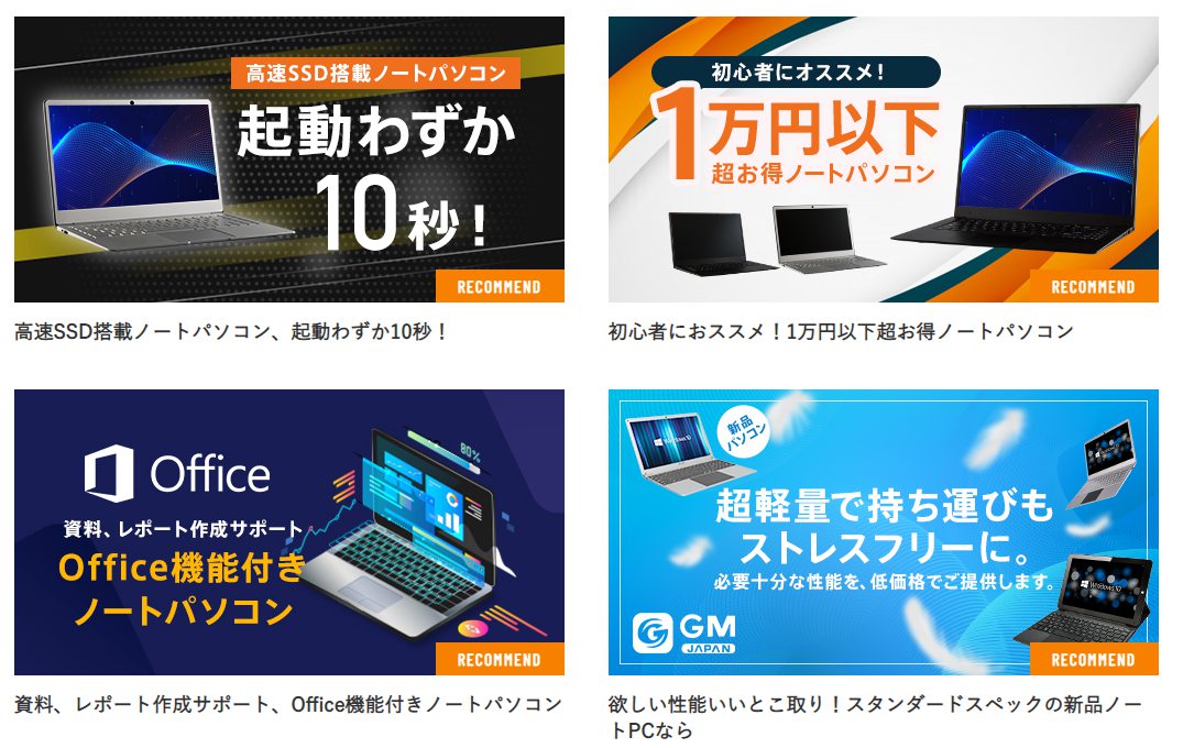 「実用性」と「丁寧なサポート」パソコン初心者の方でもすぐにパソコンがお使いいただけるようにMicrosftOfficeが大半のパソコンにすでにインストール済みです。WordやExcelもすぐに使えるため実用性にも富んでいます。また、スタッフによるアフターサポートも充実しています。